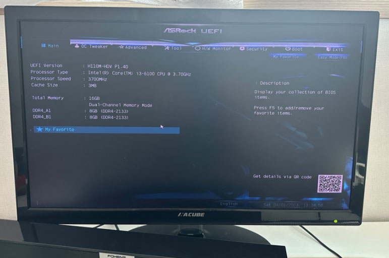 현장에 도착하여 전원을 넣어보니, 메인보드 로고까지만 나오고 더 이상 진행되지 않는 상태였습니다.