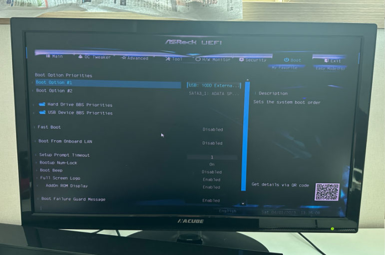 BIOS 진입은 가능했으나, 부팅 가능한 장치가 없다는 메시지가 반복되고 있었습니다.