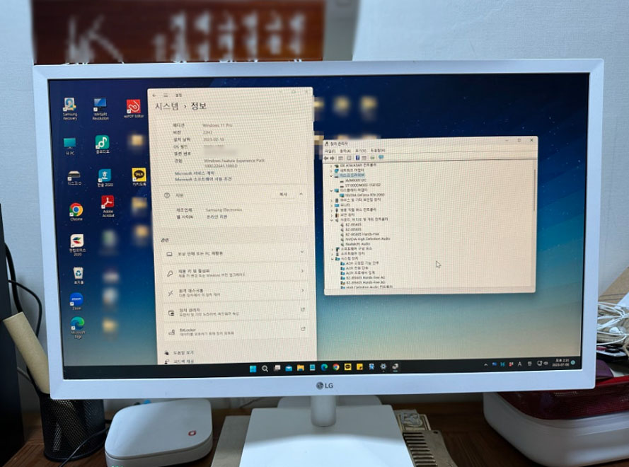 모든 케이블을 정리하고 전원 버튼을 다시 눌렀을 때, 그동안 고요했던 본체에서 ‘위잉’ 하고 팬이 돌기 시작했다. 모니터에도 삼성 로고가 뜨며 정상적으로 부팅이 진행되었다.