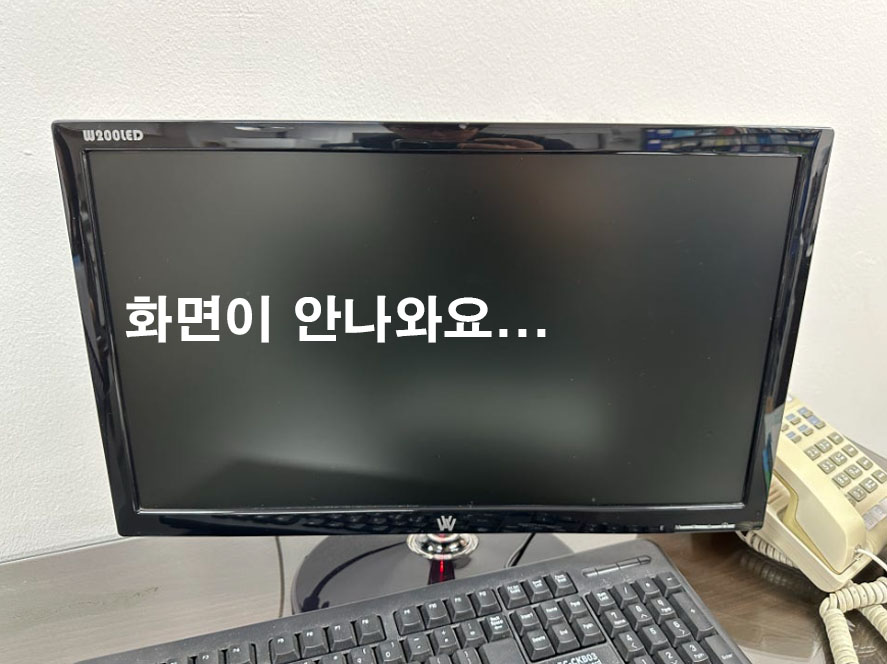 고객님께서는 평소처럼 컴퓨터 전원을 켰지만, 이상하게도 모니터는 깜깜한 어둠만을 보여주고 있었습니다.