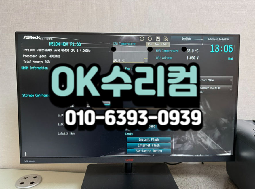 안산 컴퓨터수리 / 안산 SSD교체 / 부팅오류 해결 / 바이오스 멈춤 문제
